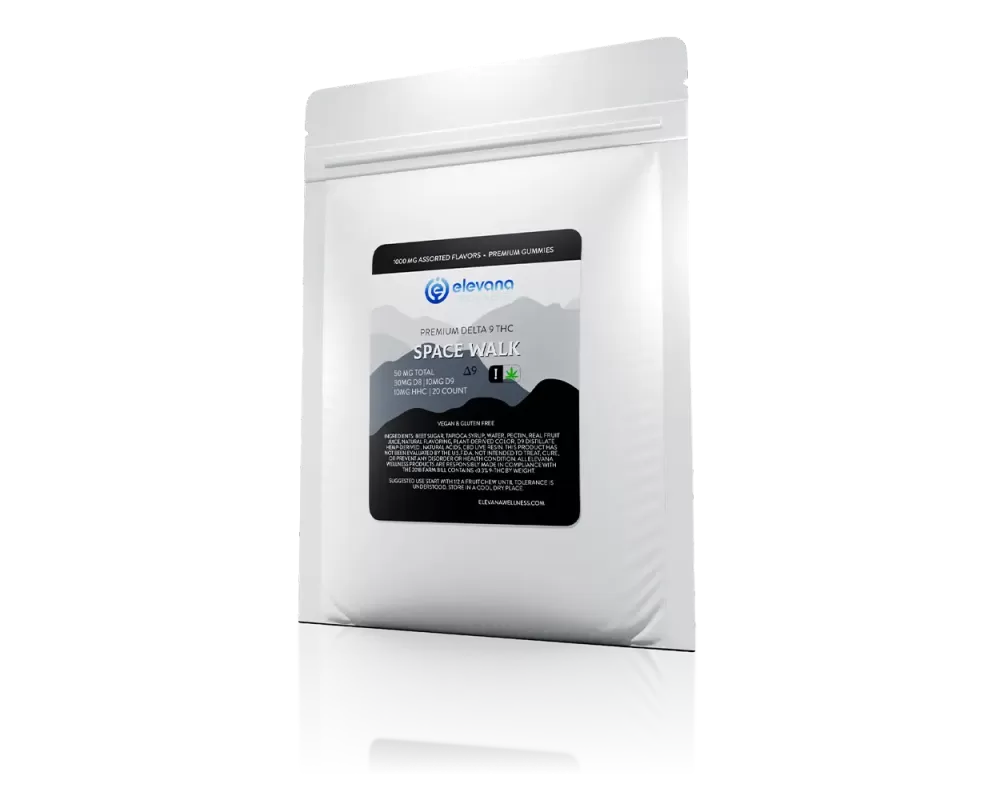 Next-Level Relaxation. Seriously Lifted. Elevana Space Walk gummies combine a potent trio of cannabinoids — 30mg Delta 8, 10mg Delta 9, and 10mg HHC — to deliver a balanced, immersive experience that's out of this world.
